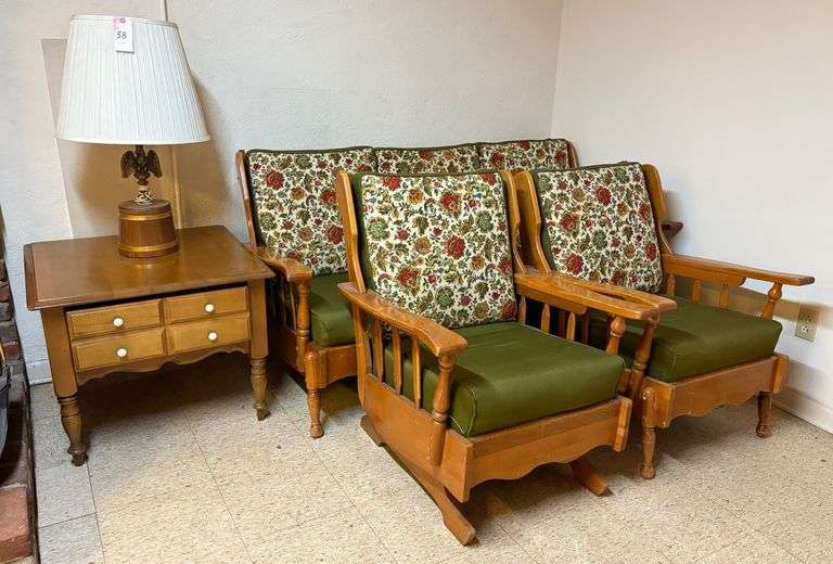 includes: 65"W sofa, chair glider, chair, end table & lamp, Note: buyer to remove & load from non-walkout basement