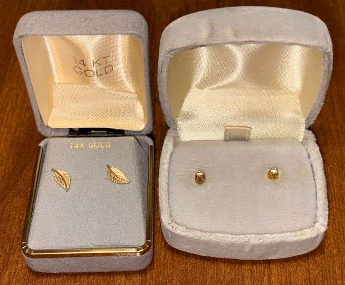qty: 2 pair, earing backs stamped 14K, unknown stone